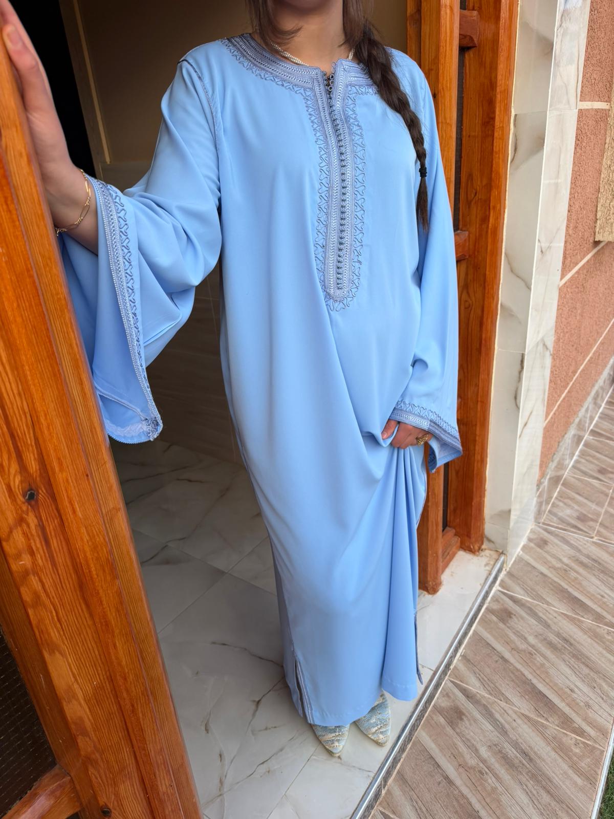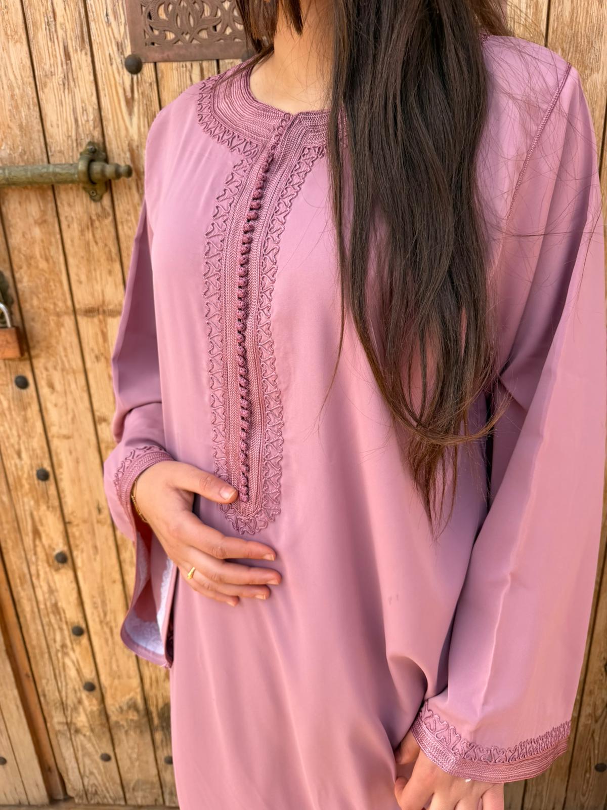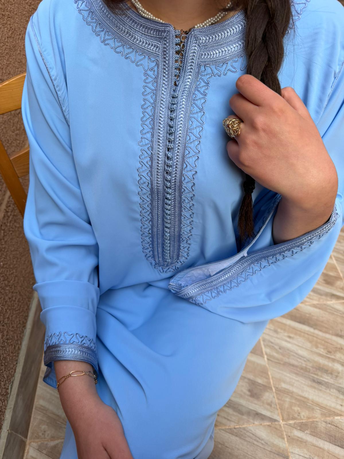 Gandoura artisanale marocaine réalisé à la main avec soins, pour un style authentique et élégant.